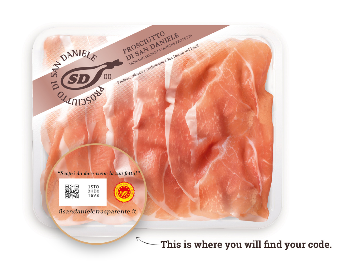 Prosciutto di San Daniele is the result of a rigorous selection and processing of premium Italian pork. From today onward, you can follow every step of its journey. Enter the code in the box to find out where your slice of Prosciutto di San Daniele comes from.